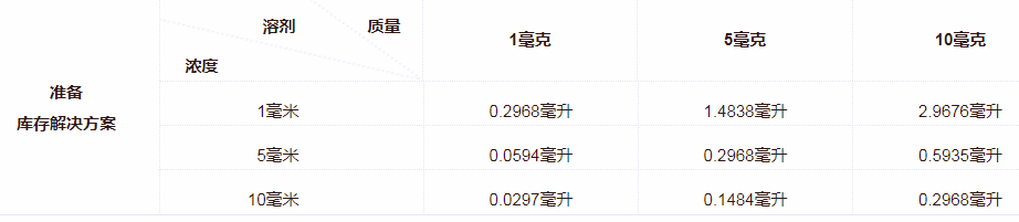 * 请根据产品在不同溶剂中的溶解度,选择合适的溶剂配制储备液,并请注意储备液的保存方式和期限。