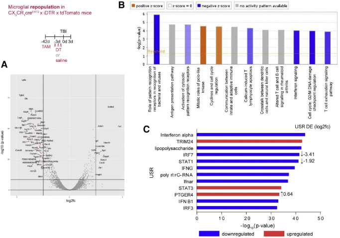 图 3. RNA 测序以及小胶质细胞再生过程中调控途径的改变