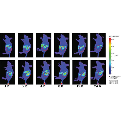 2. 将负载有 Cy5.5 的纳米颗粒(0.2 mg/kg)腹腔注射给肿瘤小鼠。