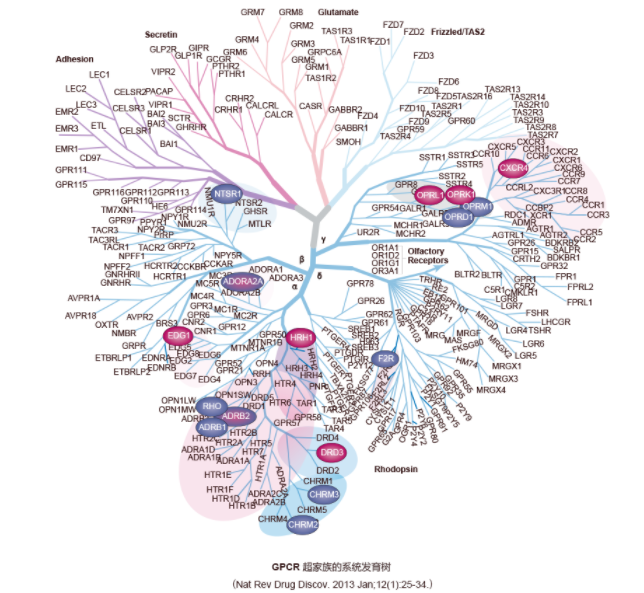 G 蛋白偶联受体(G protein-coupled receptor, GPCR)家族是最庞大的膜蛋白家族,广泛分布于中枢神经系统、免疫系统、心血管等器官和组织, 在细胞信号转导过程中发挥重要生物学功能,是很多疾病的重要靶点。