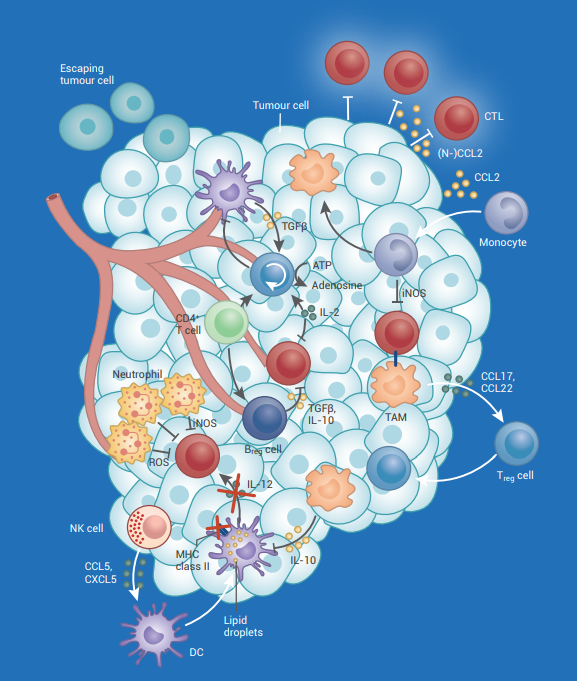 肿瘤免疫(Immuno-oncology,I-O)是一种专门针对癌症的免疫疗法。该疗法通过刺激我们的免疫系统对肿瘤细胞产生抵抗。正常情况下,免疫系统能够清除体内的肿瘤细胞,但有时肿瘤细胞可以适应体内环境并产生变异,有效地逃逸免疫系统的监视。这时,肿瘤就会进一步发展并威胁到我们的健康。肿瘤免疫疗法可以利用免疫系统,调动淋巴细胞识别和清除肿瘤细胞。目前有多种可利用的肿瘤免疫疗法,包括免疫细胞治疗(CAR-T)、单克隆抗体和免疫检查点抑制剂、细胞因子及癌症疫苗等。