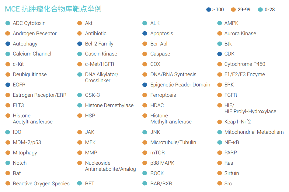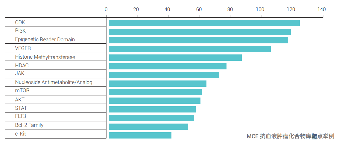涵盖多种治疗靶点,如 EGFR、Bcr-Abl、ALK、JAK、Epigenetics 等