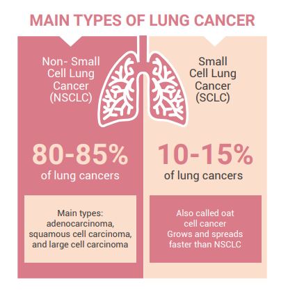 肺癌主要分为两种:小细胞肺癌(SCLC)和非小细胞肺癌(NSCLC),其中非小细胞肺癌是主要的肺癌类型,占肺癌发病率的 ——85%。 与所有癌症一样,肺癌可以通过手术、化疗、放射治疗、靶向治疗、免疫治疗或多种治疗方法联合治疗。靶向治疗是肺癌尤其是非小细胞肺癌治疗中的重要治疗手段。