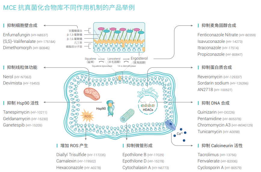 MCE 抗真菌化合物库不同作用机制的产品举例