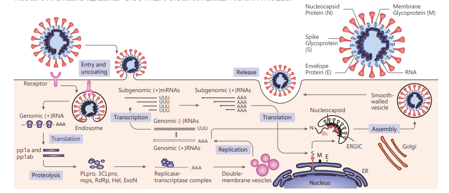 尽管不同的病毒感染机制不完全一样,但感染模式基本相同:病毒先与宿主细胞表面受体结合,核酸从衣壳蛋白中释放,透过细胞膜进入宿主细胞,病毒核酸在宿主细胞内复制,并在宿主细胞的细胞质或细胞核中发生病毒基因组的转录,从而大量的病毒核酸和蛋白质被合成出来产生新一代的病毒粒子。因此,抗病毒药物的一种作用机制是干扰病毒进入宿主细胞的能力,第二种作用机制是靶向病毒侵入细胞后合成病毒组分的过程,如核苷酸或核苷类似物药物。