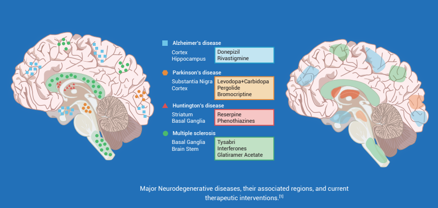 神经退行性疾病是神经元结构或功能逐渐丧失甚至死亡而导致功能障碍的一类疾病,包括肌萎缩侧索硬化症(ALS)、帕金森病(PD)、阿尔茨海默病(AD)、亨廷顿氏病(HD)以及脊髓性肌萎缩症(SMA)等等。 AD 及 PD 主要发生于中老年,随着人口老龄化,AD 及 PD 的发病日益增多。此外,HD(Huntington 舞蹈病)、ALS 及脊髓肌萎缩症等则可发生于不同的年龄段。目前,这类疾病病因尚不明确也无法治愈,严重威胁着人类健康与日常生活。