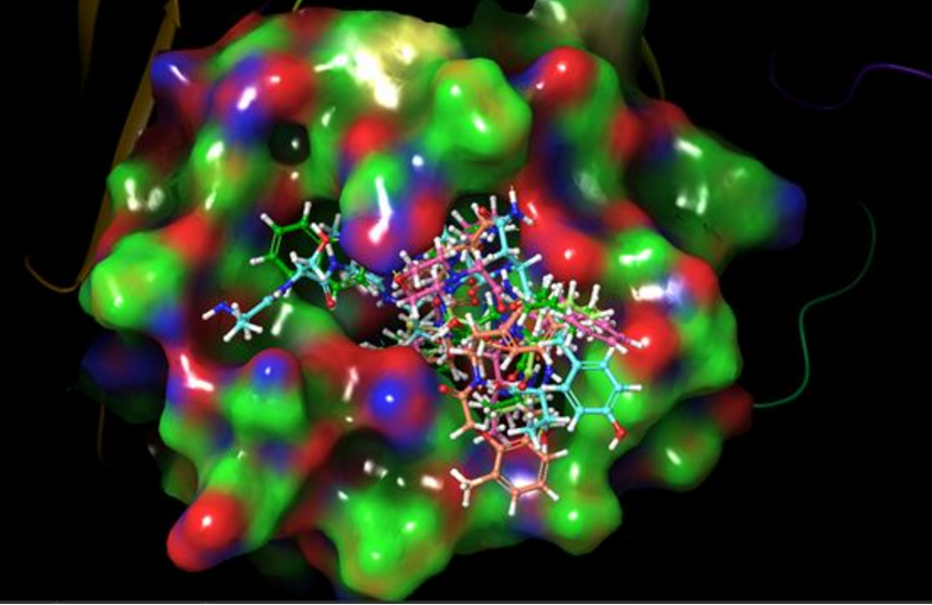 图2.代表性化合物与靶蛋白的结合模式图