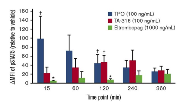 Eltrombopag (30 μM;120分钟)激活巨核细胞中的p-STAT5。