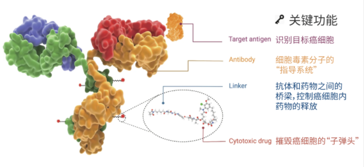 1897 年,德国科学家保罗?埃利希 (Paul Ehrlich) 率先提出将有毒化合物输送至不健康细胞的 “魔法子弹” 理论 ,他的想法后来演变成今天的抗体-药物偶联物 (Antibody-Drug Conjugate,ADC)。 ADC 利用连接子将靶向特异性抗原的单克隆抗体和小分子细胞毒性药物偶联组合而成,同时具有抗体-抗原特异性识别的肿瘤靶向性和小分子药物的强大杀伤能力[2]。相较于传统的癌症治疗药物,ADC 药物不仅通过增加有效载荷降低了毒性,还通过其抗体药物特性提高了药物的最大耐受剂量。