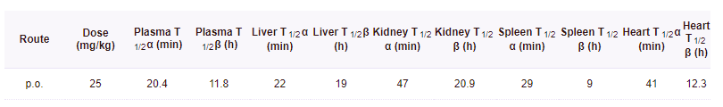 Deoxynivalenol (10-1000 mg/kg; 口服, 腹腔注射; 一次) 对 B6C3F1 小鼠的 LD50 值估计为 78 mg/kg (口服) 和 49 mg/kg (腹腔注射)[4]。