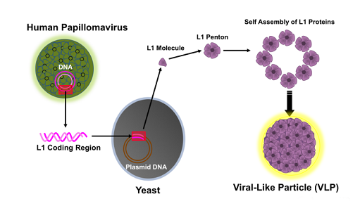 目前的 HPV 疫苗基于不同 HPV 类型的主要结构蛋白 L1 的利用,该蛋白可自组装成病毒样颗粒 (VLPs),组装的假病毒与原有的 HPV 非常相似,具有高度的免疫原性,诱导机体产生免疫应答。