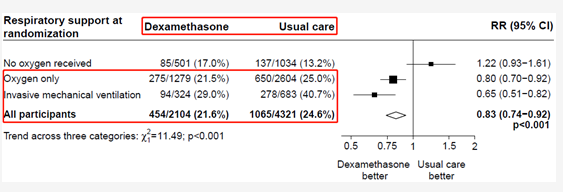 图 2. 地塞米松降低 COVID-19 病人死亡率