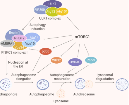 大量研究表明 mTORC1 是自噬的关键调节剂,调节自噬过程中不同步骤 (如成核,自噬体延伸,自噬体成熟和终止) 。因此,mTORC1 是调控自噬的极具潜力的靶标。