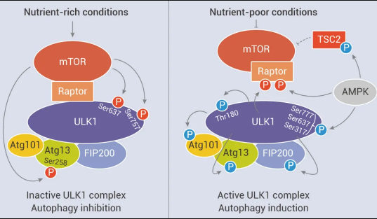 图 4. mTORC1 对 ULK1 复合物的调控作用[9]