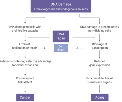 图 2. DNA 损伤在癌症和衰老中的作用[7]