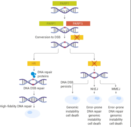 图 4. 抑制 PARP 对 SSB 和 DSB 修复的影响[10]