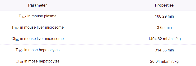 Xl01126 (10 μm;0-60最小;每15分钟间隔梯度)在小鼠血浆、肝微粒体和肝细胞中表现出很高的稳定性。