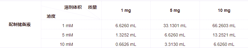 DMSO 中的溶解度 : 25 mg/mL (165.65 mM; 超声助溶 (<60°C); 吸湿的 DMSO 对产品的溶解度有显著影响,请使用新开封的 DMSO)