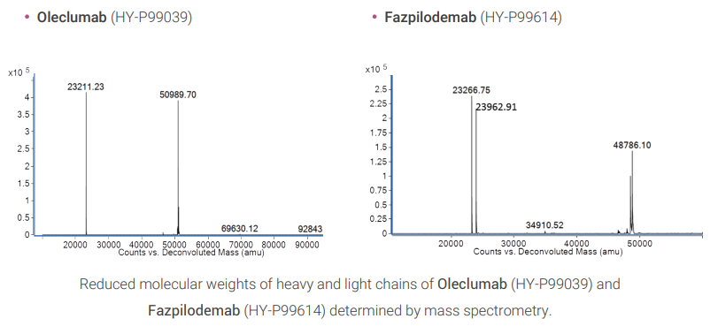 蛋白质拥有的紫外吸收性质是来自芳香族氨基酸如色氨酸、酪氨酸分子内含有共轭双键,在 280 nm 波长附近具有最大的光吸收峰。由于大多数蛋白质/抗体均含有酪氨酸、色氨酸残基,所以测定蛋白质/抗体在 280 nm 波长处的吸光度,是分析溶液中蛋白质/抗体含量的一种最快速简便的方法。MCE 抗体抑制剂产品浓度是通过 A280/消光系数计算获得。