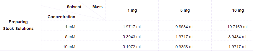 请根据产品在不同溶剂中的溶解度选择合适的溶剂配制储备液;一旦配成溶液,请分装保存,避免反复冻融造成的产品失效。